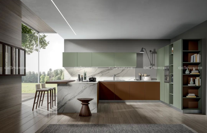 在上世紀二三十年代功能主義家庭理論的發(fā)展過程中,人體工程學被用來設計室內(nèi)空間,主要是盡可能節(jié)省和利用廚房空間。一般根據(jù)戶型情況,廚房布局大多設計為L型、U型、島型、一字型。L型廚房充分利用轉角,形成取、洗切、烹工作區(qū)三角是最常見的廚房布局,空間利用率高尤其適合長方形和小戶型廚房。